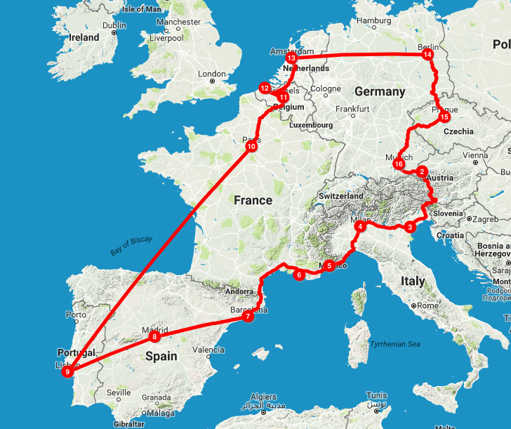I started off from Munich, went on to Venice through Austria. Spent few nights in Venice to leave for Milan and eat some pasta and do some shopping. Then went on to explore Nice and Marseille in France. Next stop was my all-time favorite cities Barcelona and Madrid where I spent a week. Then I headed to Lisbon, Paris, Brussels, Burges, Amsterdam, Berlin, Prague and finally back to Munich.